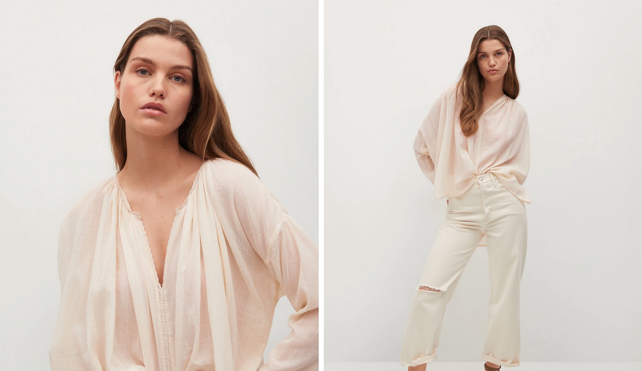 Esta blusa de textura de algodón 100% es otra de las maravillas exclusivas de Mango que solo encuentras en su página web. La tienes en diferentes tallas y con un único acabado en blanco roto. El precio es de 29,99€.