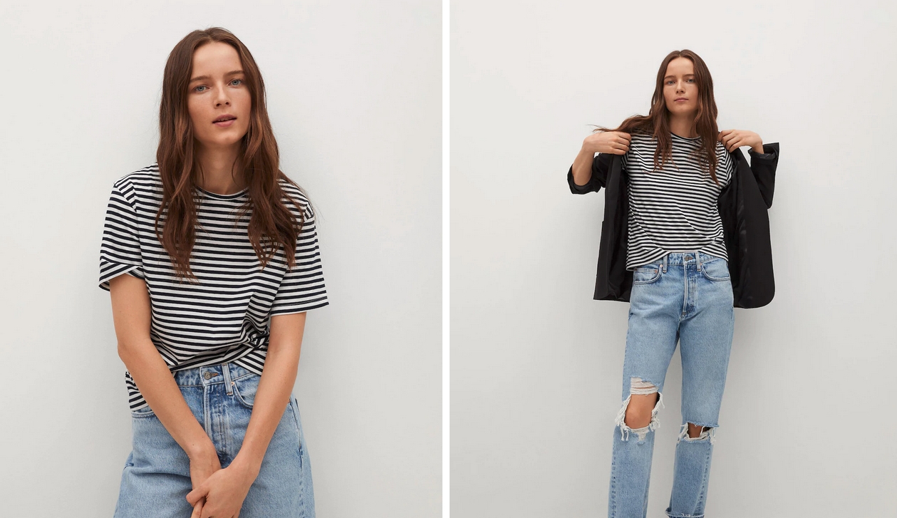La camiseta de algodón a rayas de Mango es otra de las prendas exclusivas online que deberías conocer. Solo cuesta 15.99€ y la tienes en diferentes tallas y tres acabados diferentes para elegir: azul marino, khaki y marrón.