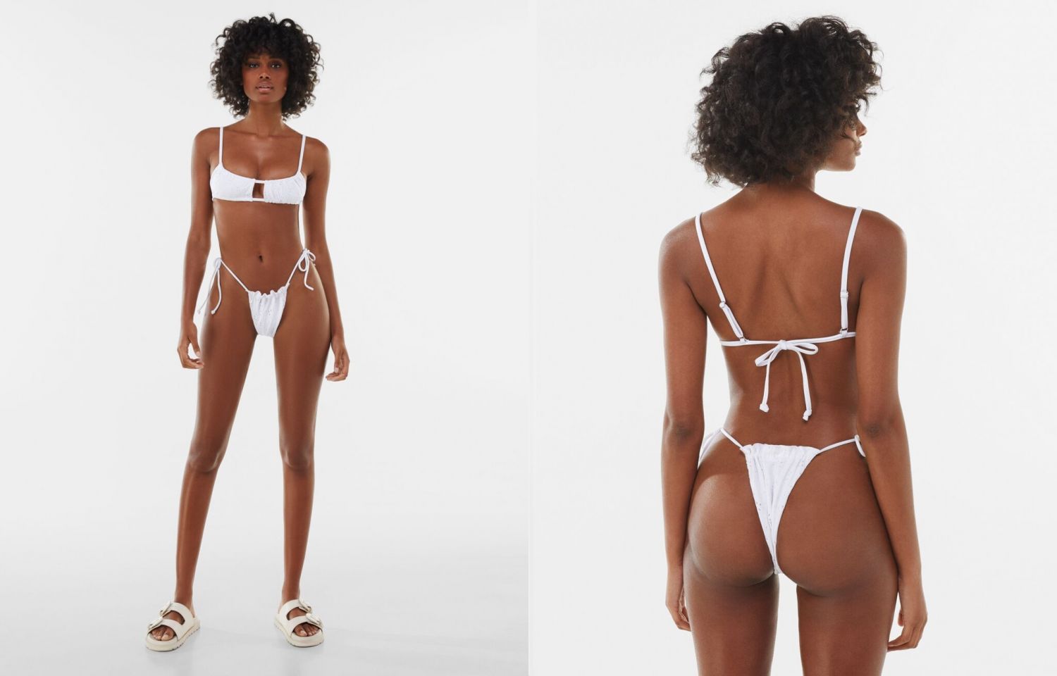 Para ir a la playa o a la piscina con un bikini atrevido, Bershka te tiene este diseño con bordado suizo que podrás encontrar por 28,99€ el set completo de braga y sujetador. También puedes comprarlos por separado por 12.99 y 15.99 respectivamente.