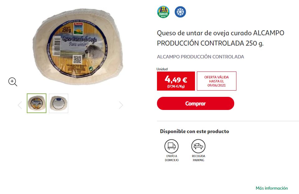 Por último en el caso que desees un producto para poder untar con tus pasapalos, este es perfecto para ti. Este queso de oveja curado tiene un sabor muy fuerte y exquisito muy agradable que es perfecto como acompañante. Podrás combinarlo con cualquier alimento de tu preferencia y obtener un sabor increíble. Este artículo se encuentra disponible por 4.49 euros en cualquier supermercado de Alcampo o en su tienda virtual.