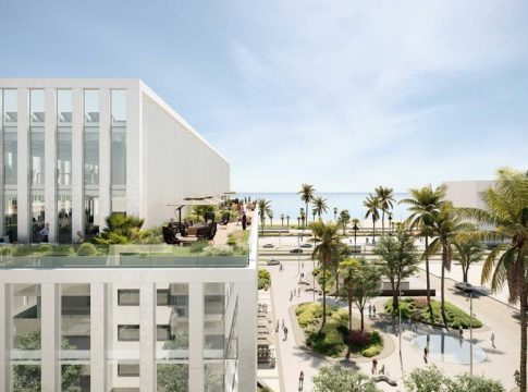 Bajo el nombre de Ágora, este edificio inteligente de fachada bioclimática y amplios jardines, destinará la planta baja a una plaza de uso público abierta al propio paseo marítimo y rodeada de zonas verdes. En total, el inmueble contará con seis plantas completas de oficinas.