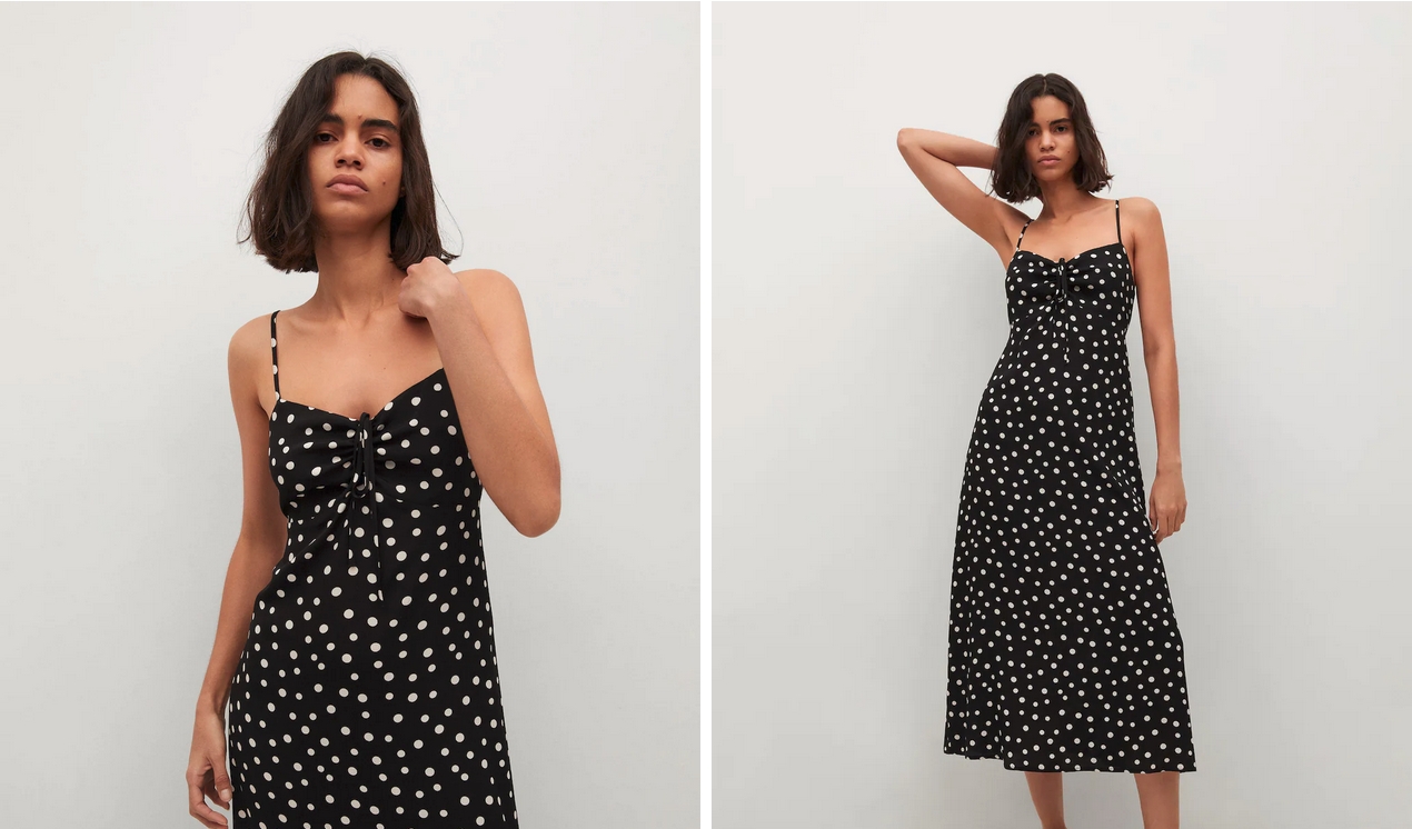 Una de las prendas más vendidas de Mango es este vestido estampado midi. Lo puedes encontrar en varias tallas y en dos colores para elegir (negro y naranja). En cuanto al precio, solo cuesta 25,99€.
