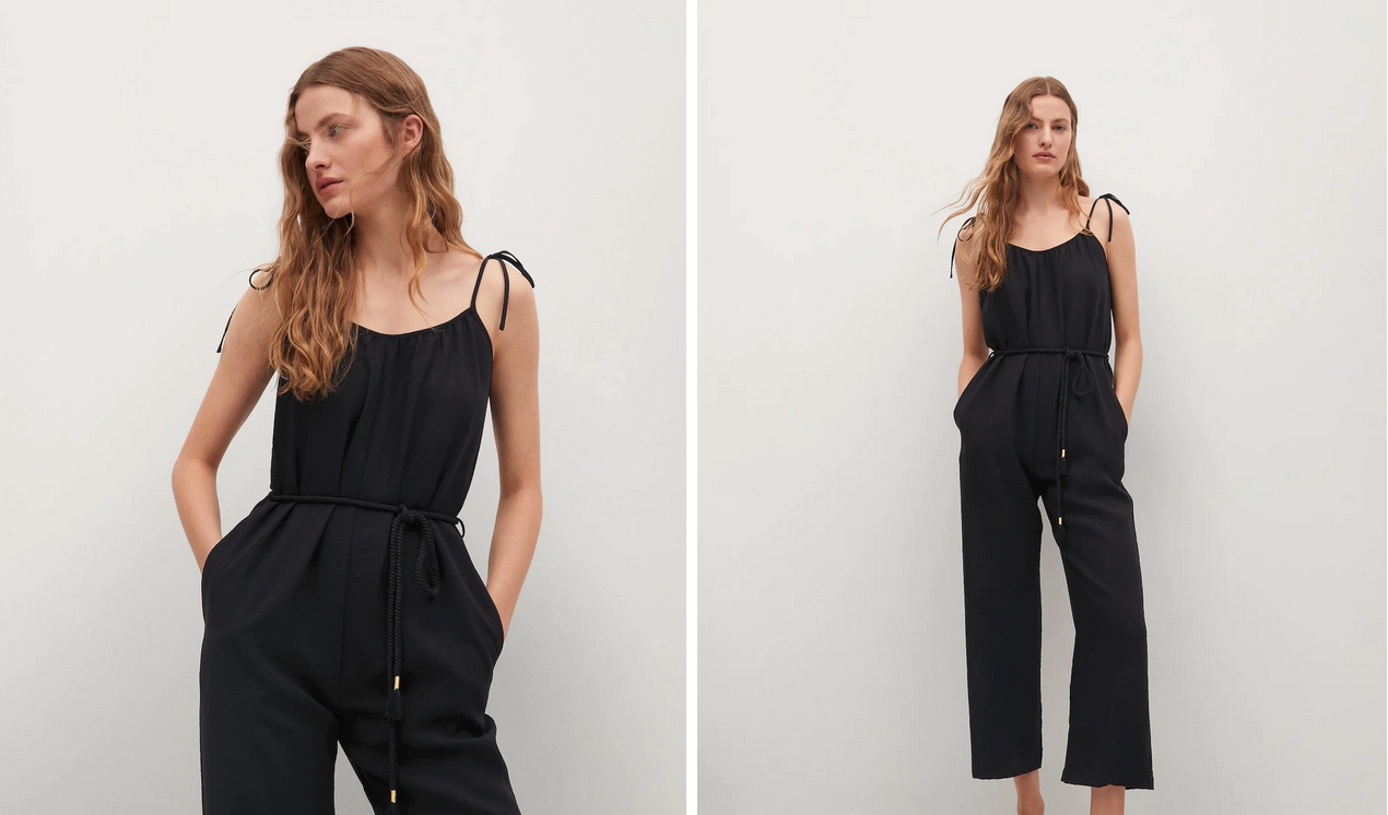 Otro de los productos más interesantes de la firma Mango es este mono fluido con cinturón. Solo tiene un único color, y varias tallas. El precio asciende a 29,99€, que no está nada mal teniendo en cuenta que es el look completo.