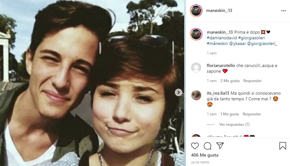 Se llama Damiano David y es el cantante y líder de Måneskin. Este chico de 22 años nació en un suburbio al oeste de Roma. Es hijo de tripulantes de cabina de Alitalia y hace poco se supo que no estaba libre. Y es que mantiene una relación desde hace cuatro años con la modelo e influencer italiana Giorgia Soleri, de 25 años. Lo llevan con discreción porque apenas comparten nada en redes sociales, celosos seguramente de su intimidad. La imagen muestra una de las pocas veces que se han dejado ver públicamente en Internet.