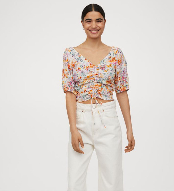 Y terminamos este artículo en el que te mostramos varias de las camisas y blusas de H&M que han hecho de muchas mujeres empiecen a comprar en esta cadena de moda con esta prenda tan floreada. Se trata de una blusa cropped que destaca, sobre todo, por su diseño entallado en crepé de viscosa. Además tiene un bonito escote de pico y unas mangas cortas abullonadas con elástico fino. Solo cuesta 20 euros.