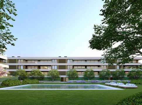 Amenabar iniciará este próximo lunes 7 de junio la comercialización de estas viviendas. Este nuevo concepto de vivienda ofrece muchas ventajas frente a las tradicionales urbanizaciones de vivienda unifamiliar ya que, sin renunciar a un espacio de vivienda equivalente, ofrece zonas comunes con prestaciones superiores a las de un unifamiliar convencional: tres piscinas exteriores, una biblioteca, espacio de coworking, sauna, spa, gimnasio, salas polivalentes, lobby gastronómico, kids club, toboganes, muchos espacios comunes en un marco paisajístico único.