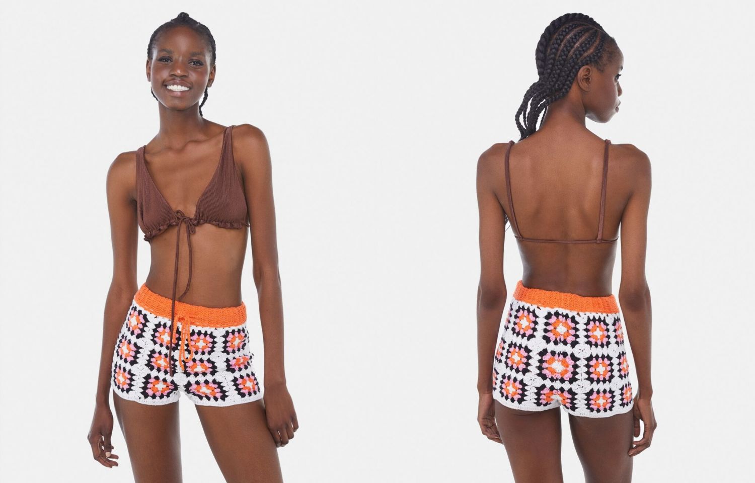 Otra de las maravillosas novedades de Bershka es este pantalón corto tan característico y atractivo. Se trata del short de crochet y parches que está disponible en un solo acabado y varias tallas por 22,99€.