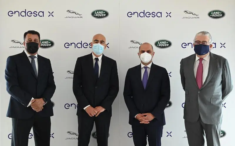 El acuerdo se ha firmado este miércoles en las oficinas de Endesa en Madrid con la presencia del presidente y CEO de Jaguar Land Rover España y Portugal, Antonio Ruíz, y del consejero delegado de Endesa, José Bogas, junto con Davide Ciciliato, nuevo director general de Endesa X.