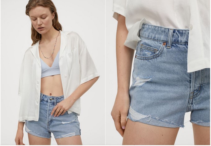 Es un vaquero corto preferido por las mujeres, ya que está diseñado con cinco bolsillos en denim lavado. Además, es un modelo de talle alto con cierre de botón y bajo sin rematar, por lo que, perfecto para usar en cualquier ocasión del día. Inclusive, son fabricados en 100% de algodón, siendo cómodo a la hora de usarlo. por lo que, se deben de lavar a una temperatura máxima de 30 grados, así que anímate a comprarlo por H&M a un precio accesible de 19,99 €.