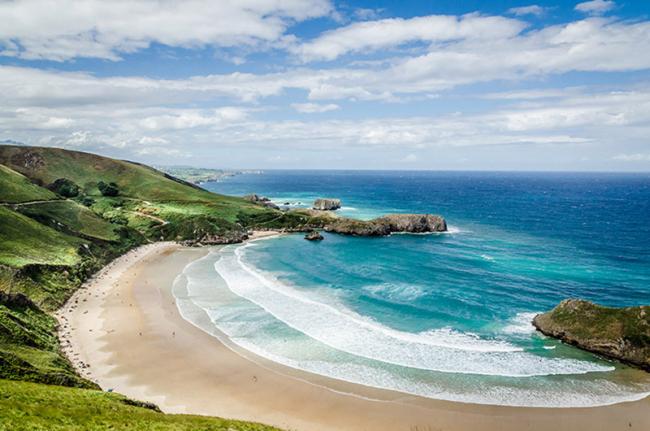 Entre vegetación y acantilados se encuentra una de las playas paradisiacas del norte de España. La playa de Torimbia, cerca de Llanes, en Asturias es un lugar de ensueño donde encontrar la tranquilidad. Un paisaje protegido de la costa, situado en la localidad de Niembro, con 500 metros de amplitud en forma de concha. Disfrutar del mar y la montaña al mismo tiempo es posible en este paraje natural. La afluencia de gente es muy baja, ya que la playa es nudista, pero el turismo es variado. Se accede fácilmente a pie, desde un cercano aparcamiento, descendiendo por un ancho camino de piedras con pendiente pero con vistas espectaculares. Una playa aislada en un idílico entorno natural que cuenta con un chiringuito en el que puedes comer.