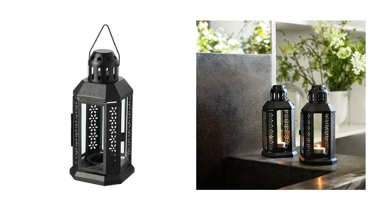 Aquí Ikea te presenta un farol con vela pequeña, de color negro y con la dimensión exacta para lo que requieres de 22 centímetros. Excelente para colocarla dentro o fuera de tu vivienda. Es muy fácil de colgar este farol y puedes crear un ambiente festivo. Alegrara tu jardín y dará lucidez a tu sala, realmente resalta a la vista de todos. Su costo por este verano es de tan solo 4 euros.