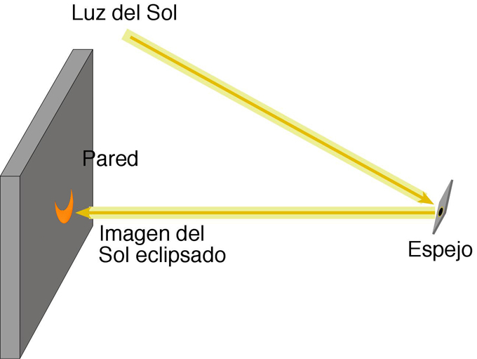 Otra forma de observar un eclipse solar sin peligro de lesiones en los ojos es viendo su imagen proyectada en alguna pantalla que esté situada a la sombra. Por ejemplo, la imagen que se consigue utilizando un espejo plano cubierto con un papel donde se ha recortado un pequeño agujero inferior a 1 cm de diámetro. Con este sistema habría que mirar la imagen proyectada sobre un techo o una pared, nunca en el propio espejo. En la web de Instituto Astronómico Nacional se puede consultar toda la secuencia de eclipse en las principales capitales españolas, y sí que quiere consultar en otros puntos, solamente hay que pulsar sobre el mapa en la provincia que corresponda.