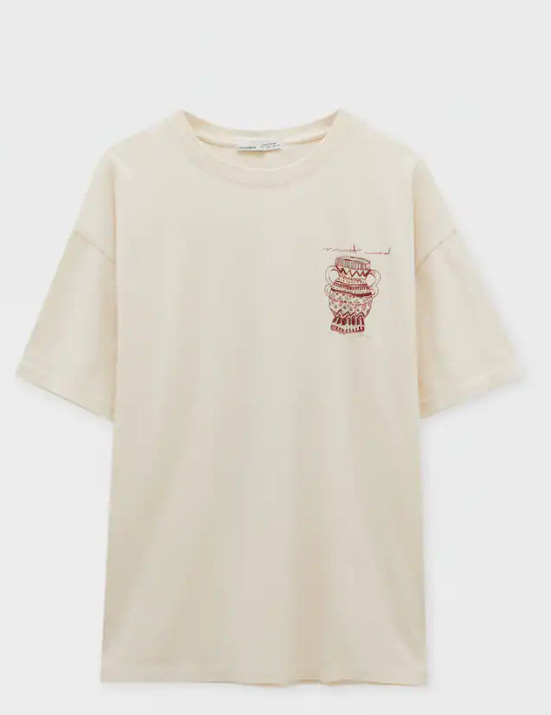 Nos vuelve locos esta camiseta. Y suponemos que a muchas otras mujeres también. Solo así se entiende que esta prenda esté funcionando tan bien en cuanto a número de unidades vendidas. Se trata de una camiseta de color blanco que tiene el diseño en pequeño de un bonito jarrón en la parte delantera. Pero también lo tiene en la trasera, aunque en tamaño grande. Tan solo cuesta 13 euros.