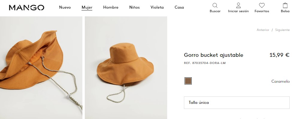 Este hermoso gorro bucket ajustable, es un hermoso gorro solicitado por las mujeres en esta temporada de verano. Cuenta con un tejido con lino y algodón, además con cordón ajustable, y un forro interior. Por lo que, es super cómodo y elegante, son fabricado 34% de viscosas, 34% de poliéster, 19% de lino y un 13% de algodón. En la parte del forro, está fabricado en 97% de poliéster y un 3% de algodón. Entonces, anímate adquirir este hermoso gorro por la plataforma de Mango a un precio accesible de 15,99 €.