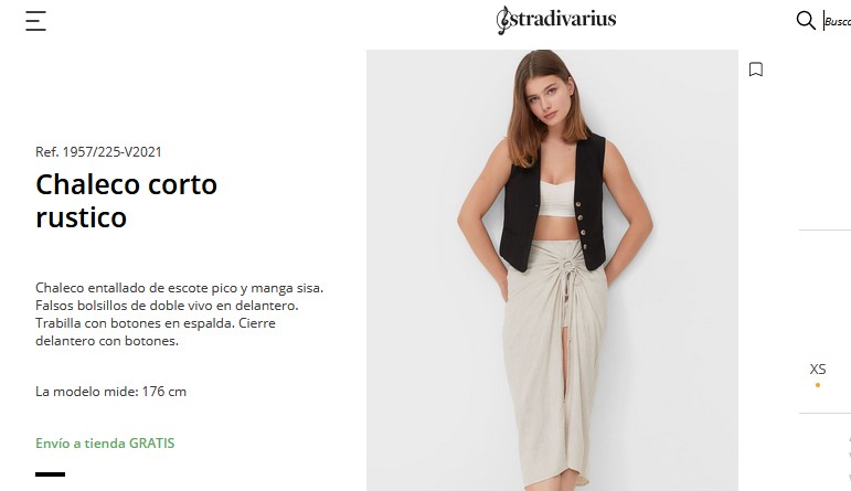 Es otro hermoso chaleco corto rústico, perfecto para los días calurosos y preferido por las mujeres modernas. Cuenta con un diseño entallado de escote pico y manga sisa, además con unos falsos bolsillos de doble vivo en delantero. Inclusive, tiene una trabilla con botones en la espalda y un cierre delantero con botones, dándole un toque único gracias a los detalles que tiene. Son fabricado en la parte exterior en 51% de lino, 49% viscosa, por lo que se debe de lavar a máquina máx. a 30ºC en centrifugado corto. Además, no debemos de usar lejía o blanqueador, planchar una temperatura máxima de 110ºC, no limpiar en seco y no usar secadora. Anímate, a comprarlos por Stradivarius a un precio accesible de 25,99 €.