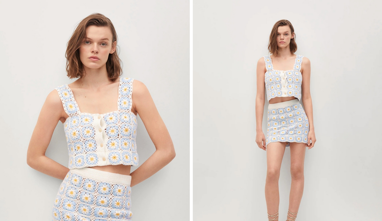 Esta otra novedad para el verano también es destacable. Se trata de una minifalda de crochet con diseño de margaritas que podrás comprar por 59,99€ en Mango.