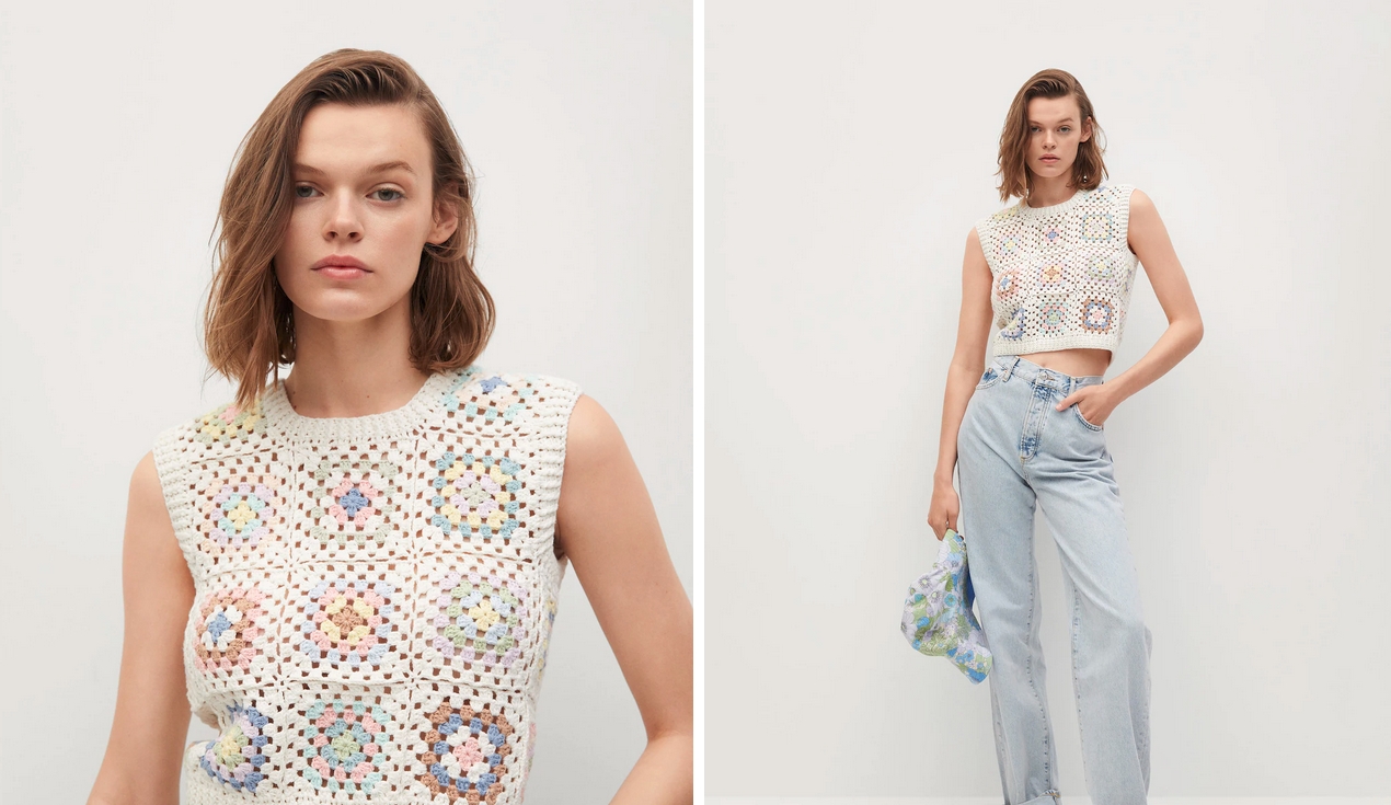Si te gustó la minifalda y top de crochet, también te encantará este otro artículo. Es el top crop crochet de Mango. Disponible solo en este tono crudo y en varias tallas por 39,99€.