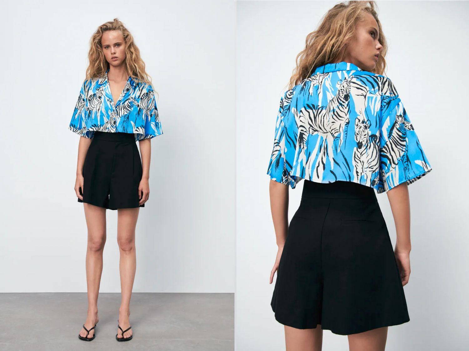 Zara también tiene un diseño más atrevido para ti, es esta camisa cropped estampada que podrás comprar en este tono azul y en varias tallas por solo 19,95€.