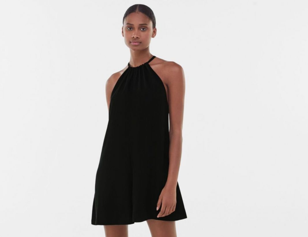 En Bershka tienen el mono corto básico de color negro más ponible. Una prenda que pertenece a la colección de verano pero que podrás usar en las estaciones de otoño y primavera con diferentes tipos de calzado. Esta confeccionado con materiales los materiales viscosa, en su mayoría, y lino, en pequeña proporción. Es una prenda suelta y ligera que proporciona la máxima comodidad. El escote es redondeado y se ajusta mediante dos tiras a la espalda. Tiene una pequeña apertura en la espalda seguida por la cremallera. Esta disponible también en color arena y su precio es de 22,99 €. Ambos colores se pueden combinar con infinidad de complementos creando un look distinto para cada ocasión.