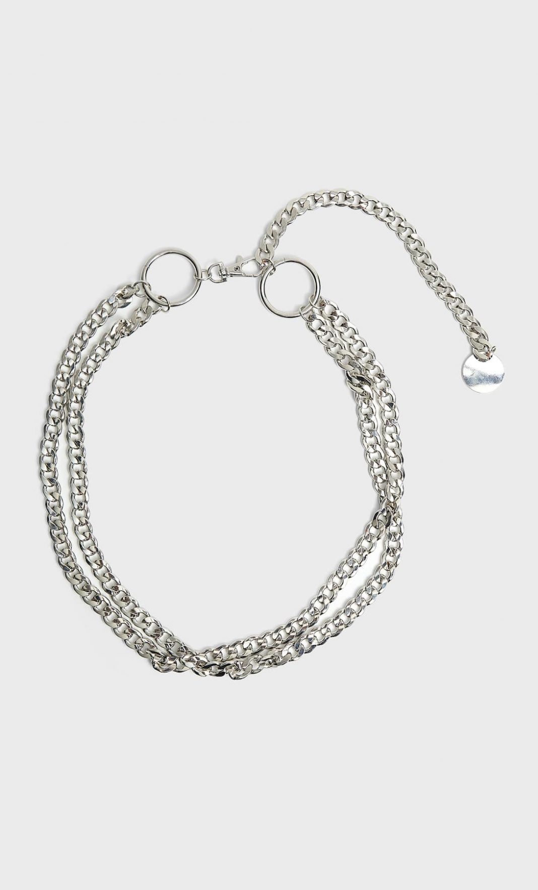 Terminamos esta descripción de lindos cinturones, con el cinturón de cadena. Este modelo es totalmente genuino y diferente al resto de los cinturones o correas que veras en el mercado. Podrás usarlos con vestido, faldas, pantalones, este cinturón esta realizado para combinarlo con cualquier pieza de vestir veraniega. Esta elaborada en 100 metal, de color gris y talla única. También en la promoción que trae Stradivarius en cinturones para el verano por tan solo 7.99 euros.