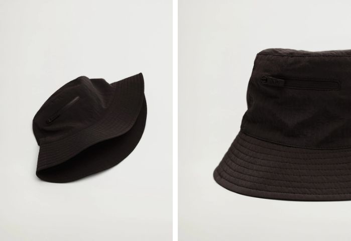 Algo especial para el verano, el gorro wáter – repellent, pareciera contradictorio una pieza resistente al agua para el verano. Pues no este gorro viene tejido con material resistente al agua y una cremallera decorativa, especial para llevarlo a la playa o a la piscina y por qué no a cualquier parte donde el agua no esté presente. Elaborado en 100% poliamida y su forro 100% poliéster, viene en talla única y podrás lucirlo con el cabello suelto o recogido. Mango lo trae en verano en colores kaky y negro por tan solo 15.99 euros