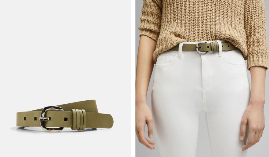 Seguimos con la misma marca pero un concepto y forma totalmente diferente, con un diseño y color que encaja muy bien con el verano y que combina con colores claros sobre todo. Hablamos de este cinturón Esprit de piel en tono kaki y que con el descuento se queda en un módico 15,55 euros. Como ves combina ideal con un pantalón blanco y su aspecto casual no evita que sea de vestir, y de vestir bien. Está hecho en 100% piel vacuna y si pinchas en este enlace de la web de El Corte Inglés, puede ser tuyo en dos clics.