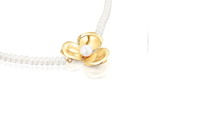 Incluye un detalle de flor de plata en la perla de 9mm, una longitud de 45 cm, y cierre en la flor. Y si quieres que tu zona del cuello destaque más, puedes unirlo al collar Tous Pearls de oro…
