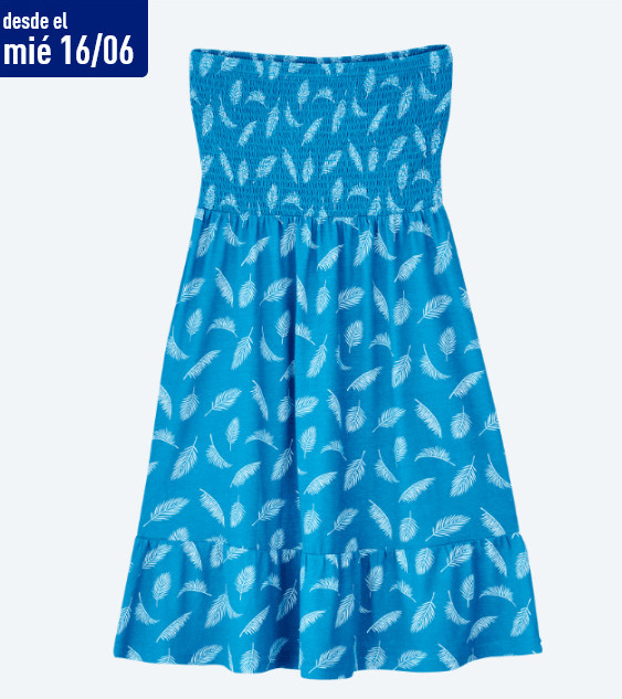 Nos ha encantado este vestido que hemos visto en el catálogo de Aldi. Por muchos motivos, pero sobre todo porque tiene un diseño muy parecido al de una marca cara. Tiene un estampado de plumas blancas con un fondo azul tono cielo que es ideal para el verano. Además, es muy cómodo porque tiene unas tiras muy finas que unen la parte delantera con la parte trasera. Pero lo mejor de todo es que tiene un precio tan barato que es surrealista. Si quieres comprártelo, tan solo te costará 7 euros.