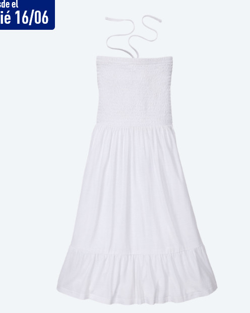 Sabemos que hay muchas mujeres a las que en verano les gusta vestir de blanco. Y es que este color en la ropa tiene una capacidad más grande para repeler el calor que otros que directamente lo atraen, como el negro. Si tú eres una de ellas y te gusta el blanco en verano, te recomendamos que te pases por cualquiera de las tiendas que Aldi tiene repartidas por el país para que le eches un vistazo a esta bonita y elegante prenda. Además tiene un precio surrealista del todo. Tan solo cuesta 7 euros.