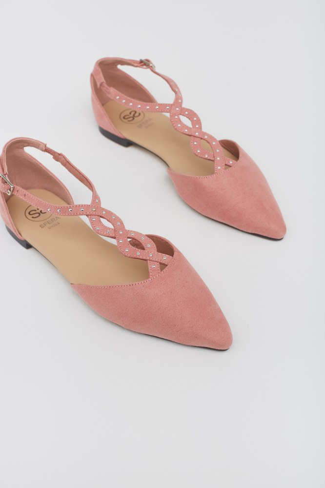 Acabadas en punta y con sujeción en la zona del talón, el detalle más llamativo es el bonito trenzado con tachas que recorre la zona del empeine y va hacia el tobillo. Las puedes ajustar fácilmente a tu pie gracias a su hebilla metálica.