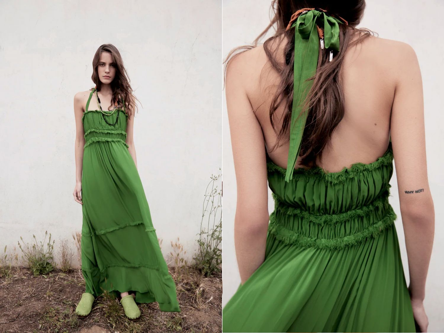 La siguiente novedad de Zara es este vestido fluido limited edition de 69,95€. Disponible en varias tallas y en este color verde liso.