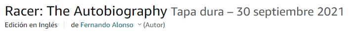 Un baile de fechas que ha sembrado la confusión en los fans de Fernando Alonso. Y una práctica nada acertada por parte de Amazon. La biografía no estaría, al menos, hasta 2023, ya que el piloto tiene dos años de contrato con Alpine que finalizaran en noviembre de 2022. Y no sería descabellado que prolongara su contrato por otra temporada. De ahí que resulte llamativo que la gran plataforma de comercio electrónica insista, una y otra vez, en una preventa y en unas fechas inexistentes para una biografía que como reconoció Fernando Alonso aún no tiene fecha prevista.