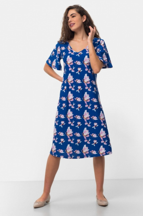 Una de las cosas que más nos ha sorprendido al ver el catálogo de moda de Carrefour es que tienen una gran variedad de prendas. De hecho, tienen vestidos para todos los gustos. Si eres de las que está buscando uno que sea escotado, que sepas que en esta tienda también los vas a encontrar. Y además algunos de ellos, como este de la imagen, parece que es de una tienda más cara. Se trata de un vestido de manga corta, con escote circular y que tiene un estampado de flores sobre un fondo azul. Además es muy barato, porque tan solo cuesta 9’99 euros.