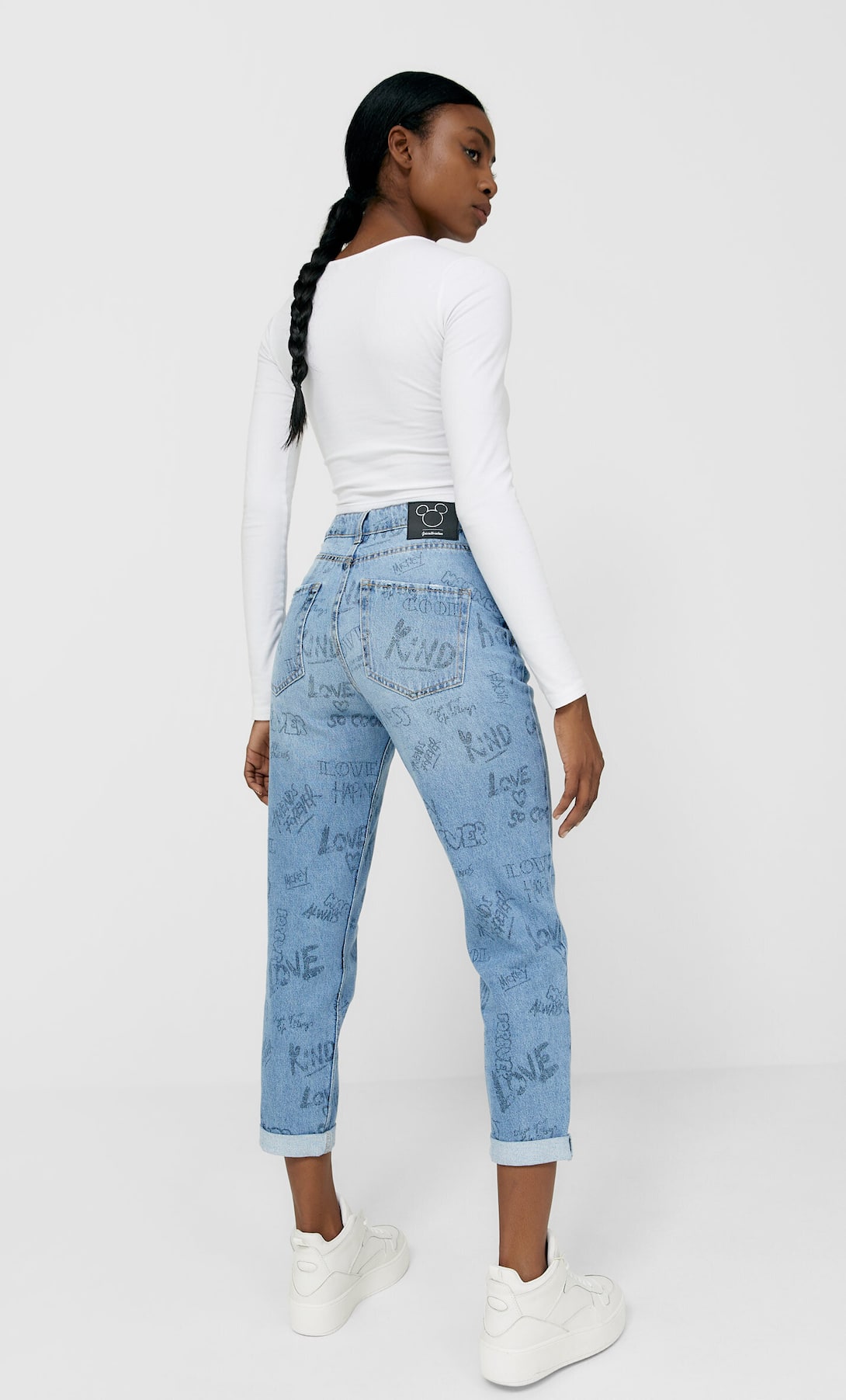 Este pantalón es un clásico de los 90 y un imprescindible en el armario femenino en esta nueva década de los 20. Además, cuenta con un estampado tipo graffiti de Mickey que lo hace todavía más llamativo. Seguro que estos vaqueros se convertirán en unos de tus favoritos.
