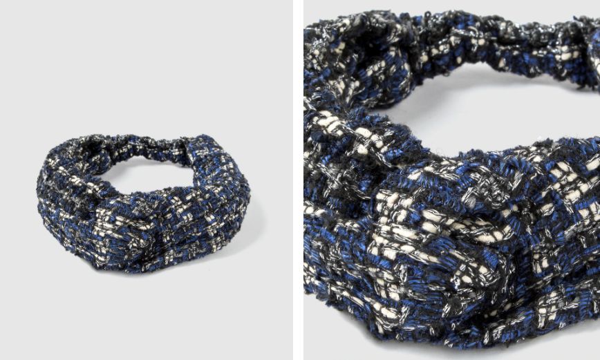 Terminamos con otro accesorio para el pelo. Como con el sombrero, pero sin cubrir, sujeta el pelo y viste y complementa tu atuendo. Ideal para días de verano ventosos y así tener la cara despejada para tus gafas de sol, para sentir bien el viento y broncearte, lo que quieras. Se trata de una anda de tweed que El Corte Inglés vende en azul marino con elástico o también en rojo. Su precio con el 53% es de 5,99 euros y está hecho 80% de poliéster y 20% de acrílico. Adquiérelo aquí.