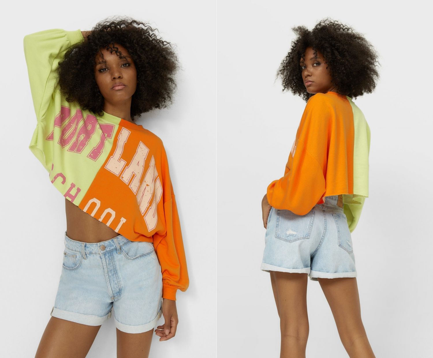 Stradivarius ha tirado la casa por la ventana con descuentos de hasta el 50% en algunas prendas hasta dejarlas solo a 9,99€. Un ejemplo es esta sudadera crop color block que se encuentra disponible en varias tallas y en este tono amarillo pastel.