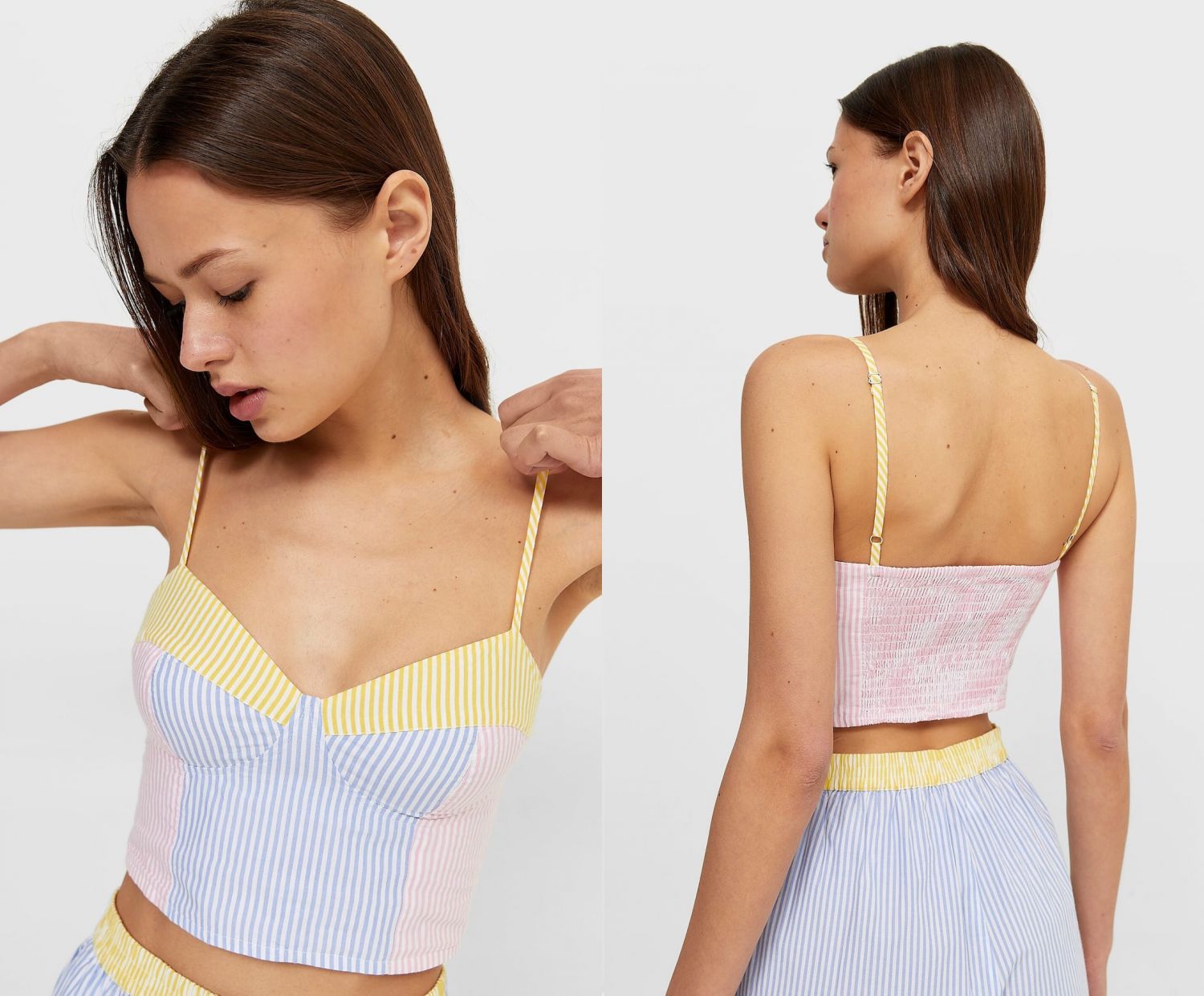 Por último, también está este destacado top bustier mix & match de la española Stradivarius. Disponible solo en este color, en varias tallas y por 9,99€ tras el descuento del 38%. Se pueden combinar, si lo quieres, con unos shorts a juego de esta firma con el mismo patrón de rayas multicolor.