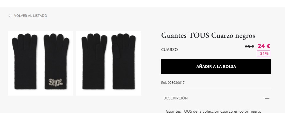 Es otro de los productos obtenidos por las personas en estas temporadas de verano, para darle un toque especial a tu estilo. Además, es una de las colecciones de cuarzo en color negro y tiene tacto suave, pero es de talla única. Están completamente fabricados en 50% de acrílico, 30% nylon y un 20% de algodón. Entonces, si están buscando unos hermosos guantes cuarzo, pueden entrar a la plataforma de Tous y lo pueden adquirir a un precio accesible de 24 €.