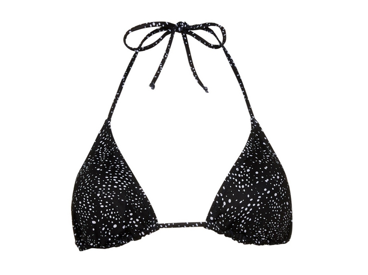 Se encuentra disponible en varias tallas, aunque solo tiene un único acabado: el negro con estampados blancos en forma de manchas. Es cómodo y tiene tirantes finos con lazada para atarlo tras el cuello. Pero hay otras gangas (de todo tipo) que son aún más interesantes.