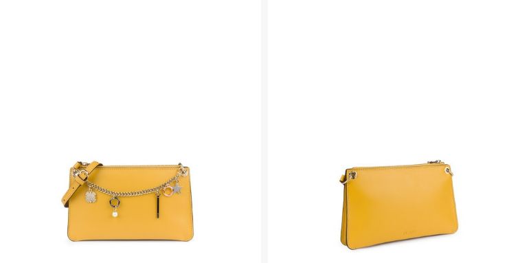 Comenzamos la descripción de esta promoción de Tous, con esta bandolera Liz Pendants mostaza de piel, perteneciente a la colección New Liz Pendants de piel en color mostaza, con cierre de cremallera.