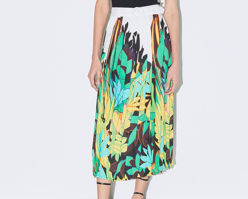 Ahora que por fin ha llegado el verano, hay muchas mujeres que cuando tienen que vestir con una falda larga prefieren llevar una que tenga un diseño y estampado tanto colorido como alegre. Si tú también piensas de esta manera, estamos convencidos de que esta falda de Sfera te va a gustar. Porque tal y como puedes ver en la imagen tiene un diseño muy divertido gracias a todos los colores que tiene su estampado. Otro punto a favor es su precio. Porque si antes costaba 40 euros, hoy puede ser tuya por tan solo 30 gracias a la rebaja que tiene.
