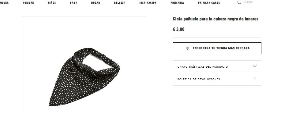 En los días o en las noches donde el calor veraniego arremete fuertemente y quieras que el roce de tu cabello no te moleste. Las tiendas Primark, tienen esta cinta pañuelo para tu cabeza en color negro y lunares, con la cual podrás sujetar de una manera fácil tu cabello, sin deslucir nada tu rostro. La combinación de su color, sus lunares y tu cabello harán una combinación perfecta y sentirás la comodidad que buscas luciéndote y sintiéndote elegante. Esta cinta pañuelo será tuya por tan solo 3 euros.