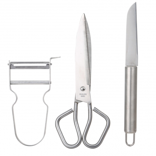 Estos tres utensilios de cocina son los más demandados por los usuarios. Son productos básicos que necesitas para la preparación de los alimentos. Incluye un pelador de verduras y frutas, muy útil para conseguir un resultado óptimo sin cortarte y en la mitad de tiempo. También incorpora unas tijeras que son perfectas para limpiar carnes y pescados antes de su elaboración. Por último el cuchillo multiusos que te permitirá trocear todos los alimentos para su cocinado, así como partir cuñas de queso. Los 3 accesorios puedes conseguirlos individualmente pero en pack salen más económicos. El precio del set era de 9,99 € pero ahora está rebajado y puedes conseguirlo por 7,99 € en cualquier punto de venta de Carrefour.