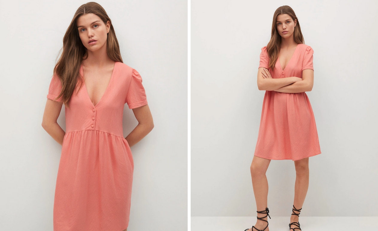 Uno de los vestidos rebajados que está arrasando en Mango es este vestido fluido corto que podrás comprar en varias tallas, y dos colores de acabado para elegir (rosa claro y naranja tostado), por solo 12,99€ tras el descuento del 30%.