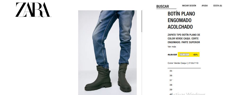 Estos hermosos botines planos de color verde caqui, son otro de los productos más solicitado de Zara. Cuenta con un corte engomado, además en la parte superior está completamente acolchada y tiene un tirador trasero. Es perfecta para usar en las temporadas de veranos, y sobre todo por la comodidad que ofrece. Entonces, si están buscando unos hermosos botines y super cómodos solo deben entrar a Zara por un precio accesible de 15,99 euros.