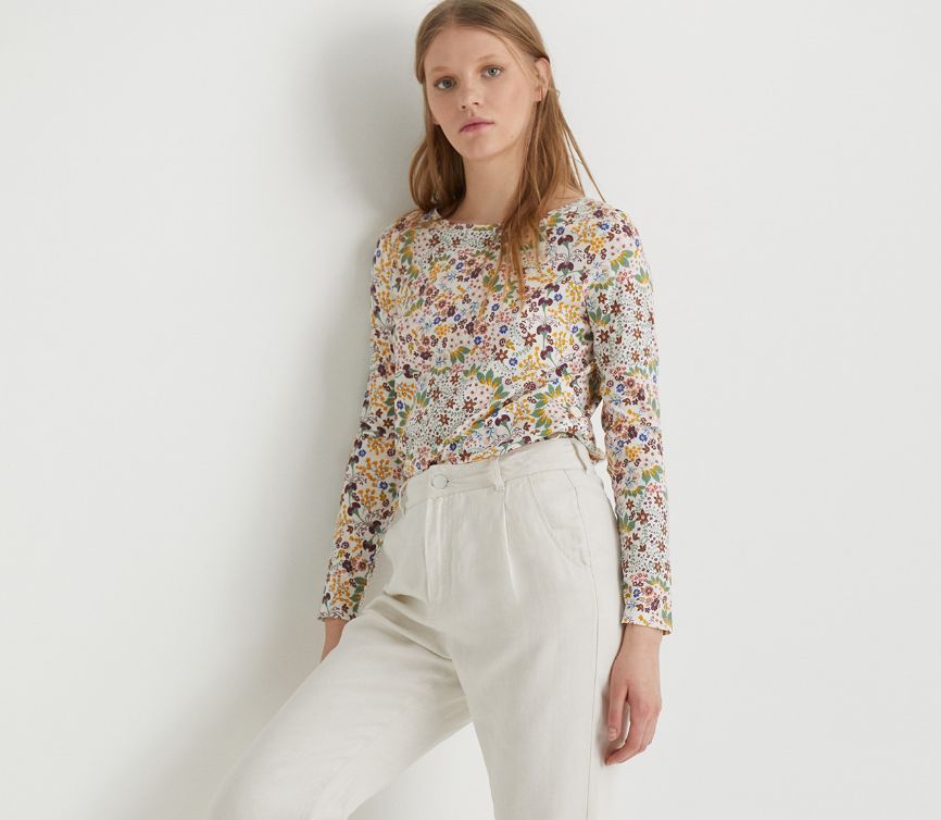 Por mucho que estemos en varano y que las temperaturas estén muy altas, hay veces en las que es necesario tener en el armario una camiseta de manga larga. Sobre todo si vives en el norte, donde los días suelen ser más frescos. Si estás pensando en comprar una camiseta de este tipo te recomendamos que te pases por cualquiera de las tiendas que Sfera tiene repartidas a lo largo del país y que eches un vistazo a esta prenda. Se trata de una camiseta casual que tiene un bonito estampado de flores. Y atención, porque está muy barata. Solo cuesta 5’99 euros.