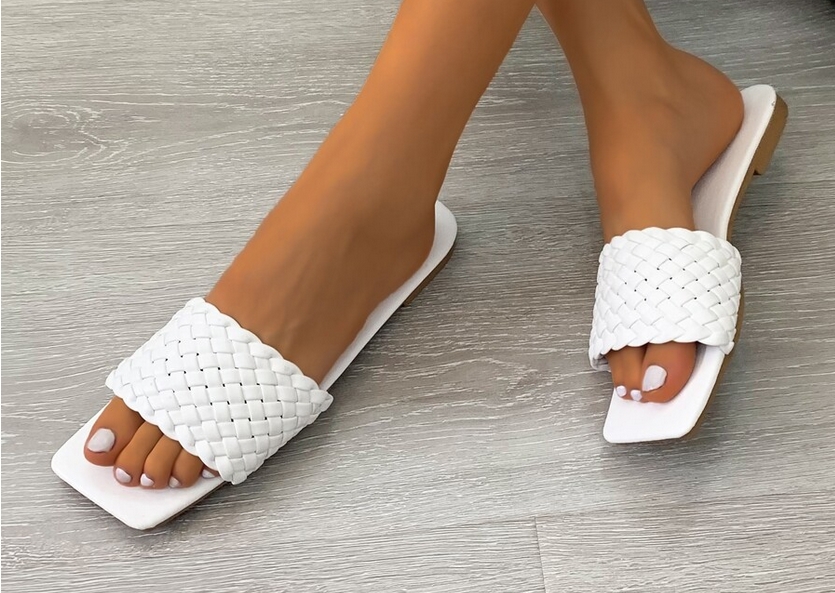 Unas sandalias magníficas para las vacaciones de verano, que pueden combinar muy bien con cualquier look de esta época del año, y con unos detalles con punta cuadrada, textura entrelazada en cuerina, suela cómoda y plana, y con caucho para mejor adherencia.