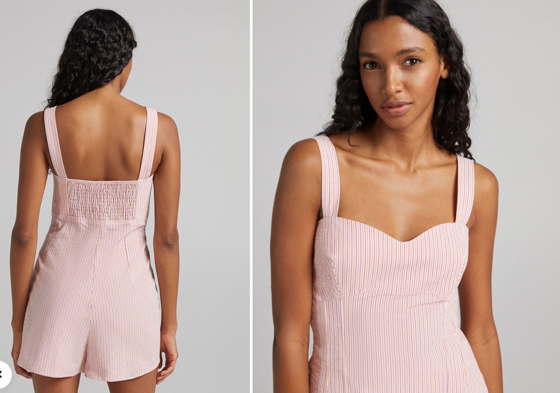 Por último, otra de las novedades de Bershka que más está triunfando es este mono de tirantes a rayas de color rosa. Un total look que podrá ser tuyo por 22,99€ en diversas tallas.