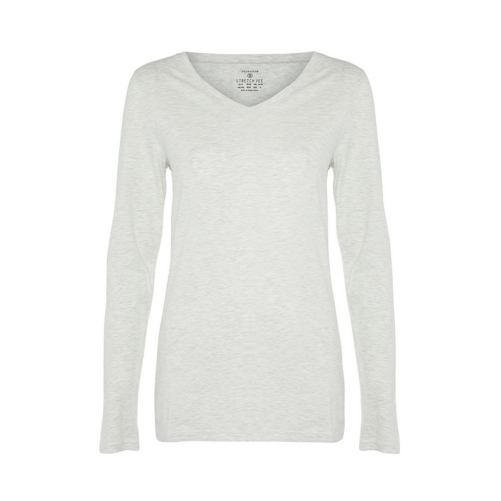 5Camiseta elástica de manga larga con cuello de pico gris piedra