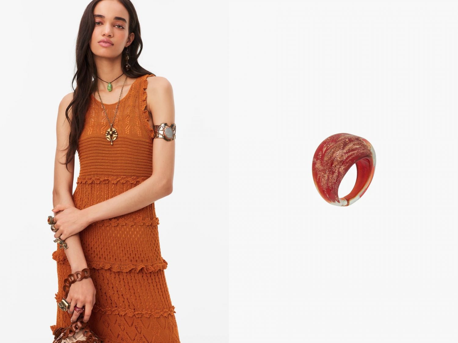 Zara también cuenta con anillos, como este Glass Limited Edition. Una pieza única que podrás combinar con tus looks, ya que se encuentra disponible en varios colores para elegir: rojo, amarillo y verde. Todos ellos por 3.99€ tras rebajar su precio un 55%. Y, por supuesto, los puedes complementar con otros collares o pulseras de esta tienda de moda que van a juego.